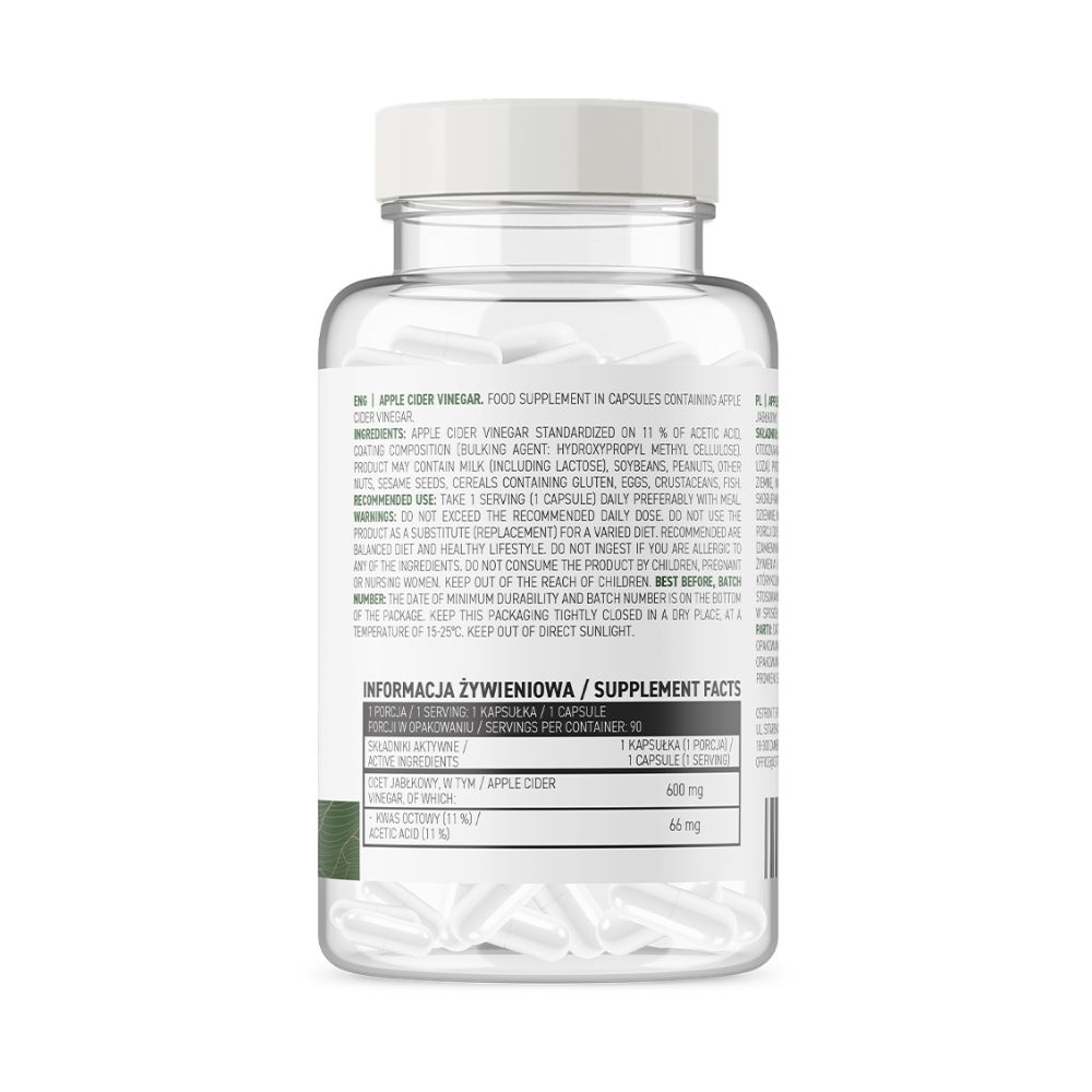OstroVit Яблочный уксус VEGE 90 капсул — это высококачественная пищевая добавка, являющаяся источником яблочного уксуса со стандартизированным содержанием уксусной кислоты 11%. Это веганский препарат в легко проглатываемых капсулах, предназначенный для людей, заботящихся о здоровье и красоте и желающих дополнить свой ежедневный рацион ценным веществом.